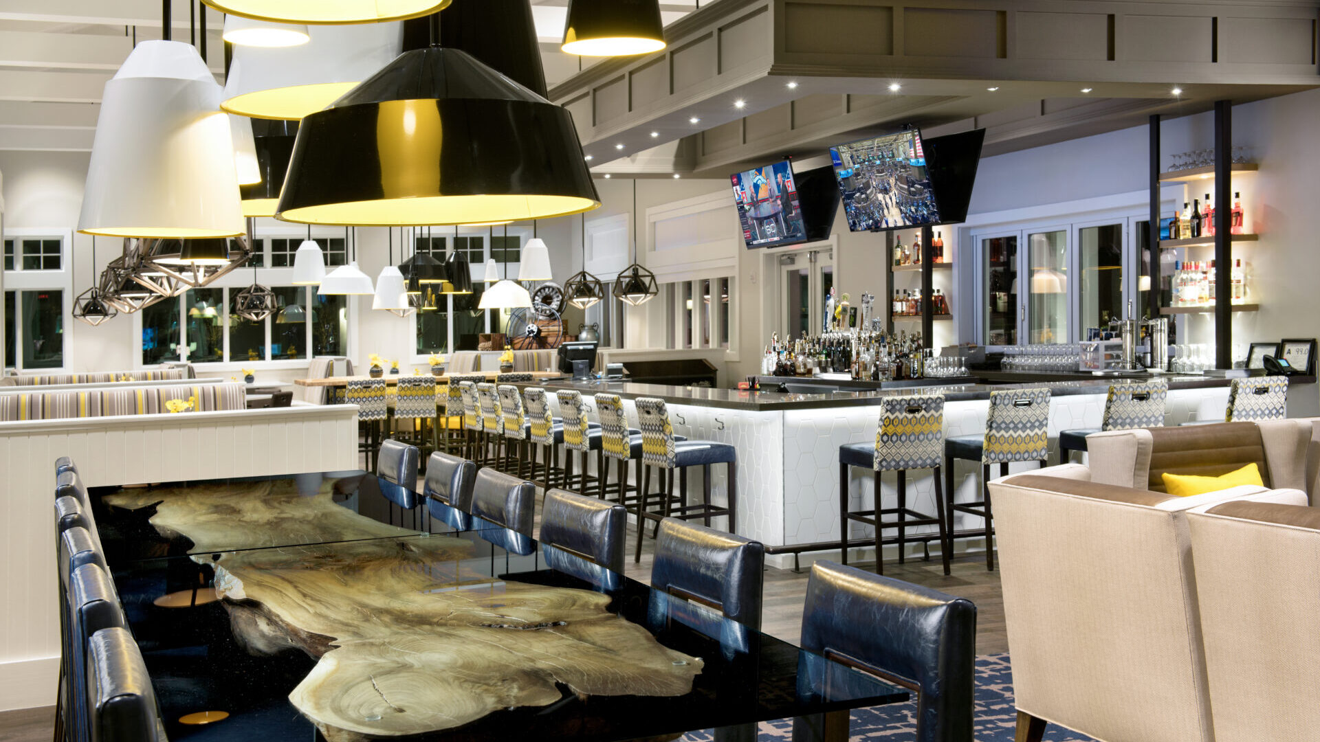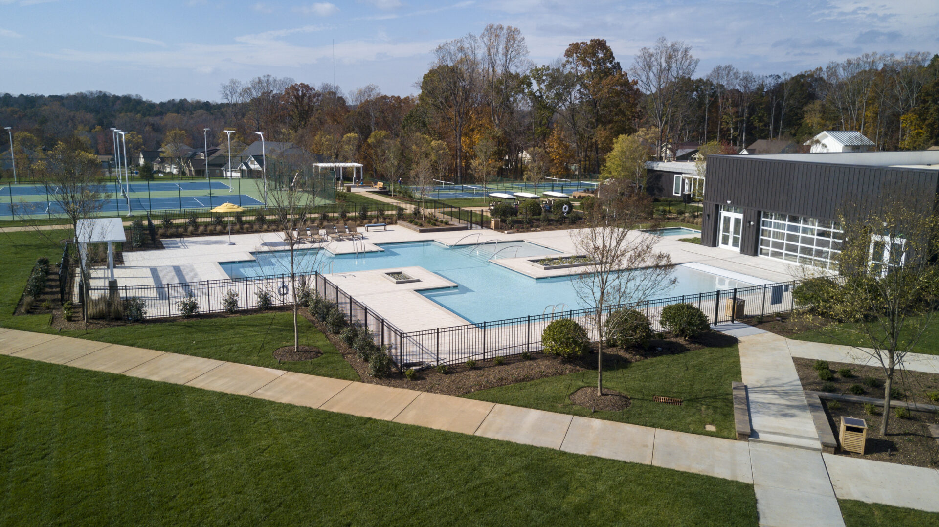 A private member club at the center of the Trilogy Lake Norman residential community, the Twin Mills Club is a beautifully crafted private clubhouse designed to create a destination for all residents to enjoy no matter what their interests. The 34,000-square-foot space features a mix of lifestyle amenities including a culinary studio, full bar and restaurant, event center, fitness center, indoor and outdoor pool, wine room, high-end restrooms/locker rooms, an outfitter, and tennis courts, affording Trilogy residents luxury experiences within the comfort of their own neighborhood.